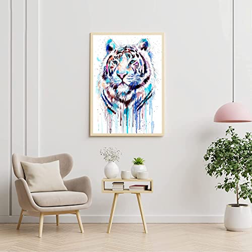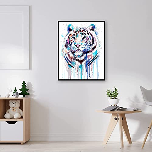 POENOEN DIY 5D Diamond Painting Kit per Casa Decorazioni Bianco Tigre Completo Pittura Diamante Kit per Adulte Bambini Pietra Rotonda Diamond Art per Natale 30x40cm
