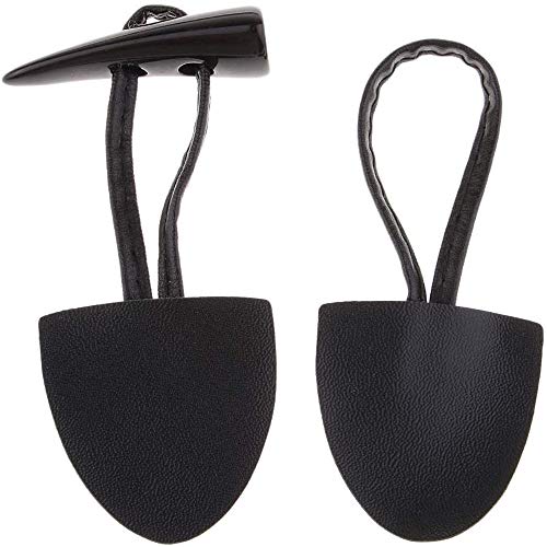 POFET 10 set corno PU pelle Toggle bottoni di fissaggio per cappotto giacca duffle fai da te artigianato fatto a mano - nero, 16x4cm