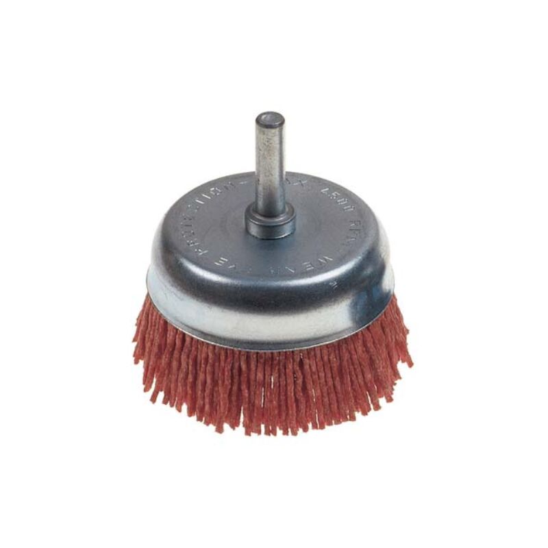 Setole in nylon abrasivo da Mm. 25 di diametro. Con gambo da Mm. 6x25. In blister.