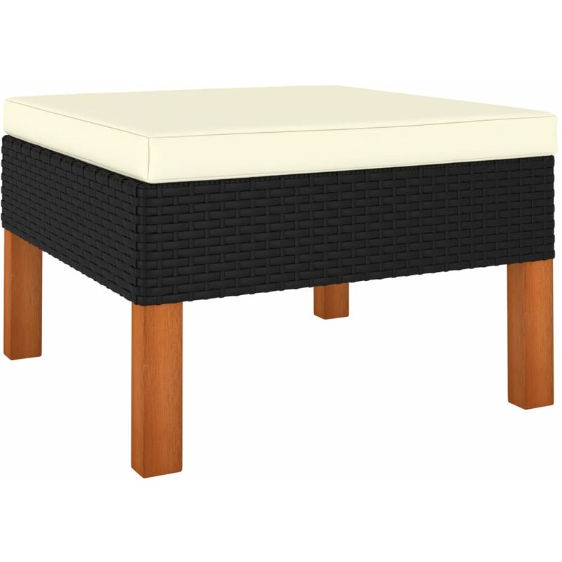 Questo poggiapiedi è una scelta eccellente per rilassarsi e godersi il bel tempo, fare un pisolino o chiacchierare con la famiglia e gli amici. Caratterizzato da una struttura in acciaio verniciato a polvere rivestita in rattan PE, questo poggiapiedi è robusto e facile da pulire. Le gambe in legno massello di eucalipto contribuiscono a conferire ulteriore robustezza e stabilità. In particolare, il cuscino aggiungone ulteriore comfort ed è dotato di cerniera, pertanto il rivestimento è sfoderabile e lavabile. Grazie alla costruzione leggera in rattan PE, il poggiapiedi si può spostare facilmente. Potrete combinarlo con altri segmenti modulari disponibili nel nostro sito e personalizzare il vostro salotto da giardino con lo stile che preferite! Nota: Si prega di coprire il poggiapiedi in caso di pioggia, neve e gelo per assicurare la sua durata nel tempo. Colore: Nero Colore del cuscino: Bianco crema Materiale: Rattan PE, acciaio verniciato a polvere, legno massello di eucalipto con