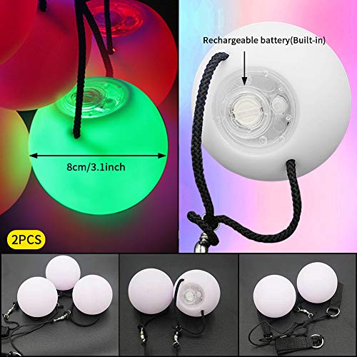 POHOVE - 2 palline LED Poi ricaricabili tramite USB, con guinzaglio regolabile e luci a LED, flusso luminoso e luminoso, per ballare