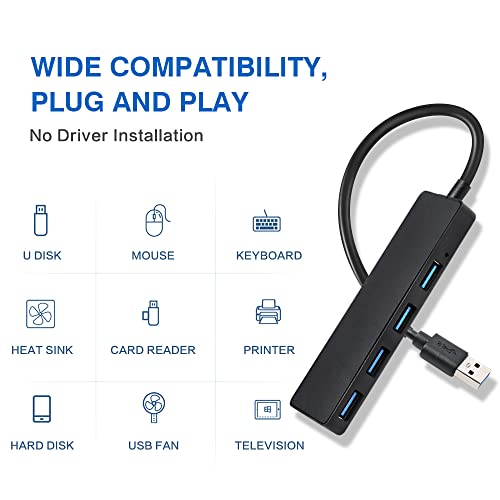 [Compatibilità forte] USB hub 3.0 non ha bisogno di essere installato, plug and play. Compatibile con Windows, MacOS e vari personal computer. Lo splitter USB può essere collegato a tastiera, mouse, stampante, fotocamera digitale, disco U, disco rigido esterno ecc.