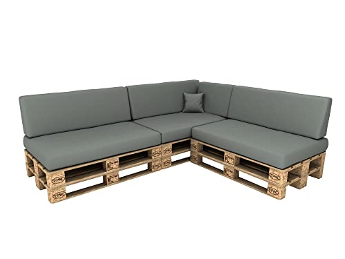 POKAR Set di Cuscini per Europallet Impermeabile da 8 Pezzi: 3X 120x80 + 3X 120x40 + 1x 60x40 + 1x 40x40, per Divano da Giardino, Senza Pallet, Grigio