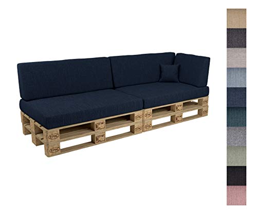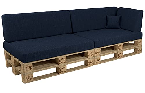 POKAR Set di Cuscini per Europallet da 6 Pezzi: 2X Sedile 120x80cm +2X Schienale 120x40cm +1x Schienale (Laterale) 60x40cm +1x Decorativo 40x40cm, per Divano da Giardino, Senza Pallet, Blu Scuro