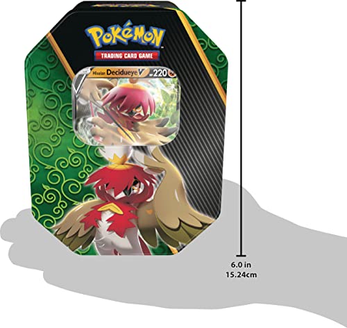 Pokemon TCG: Divergent Powers Tin - Hisuian Decidueye V (1 carta stagnola e 4 pacchetti di ripetitore)