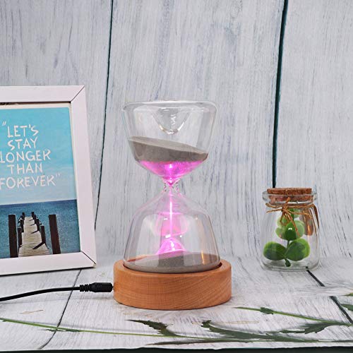 Pokerty Lampada a clessidra innovativa, clessidra 2 in 1 Timer per sabbia da 15 minuti 7 colori Luce notturna a LED Sabbia Vetro Ornamento da tavolo Luce di temporizzazione