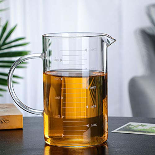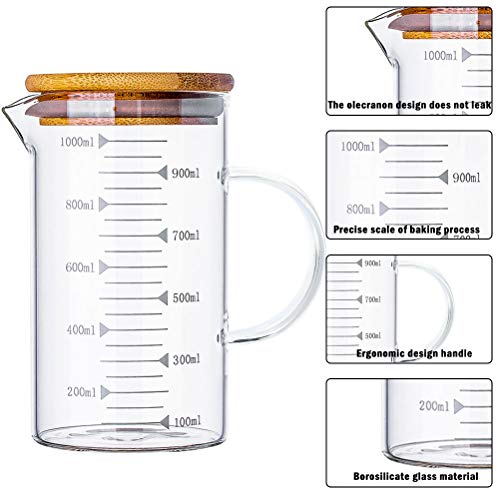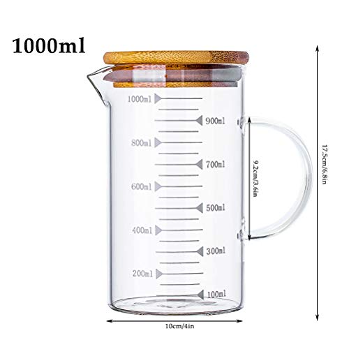 POKIENE Misurino da 1 litro, Brocca Graduata di Vetro,Caraffa, Bicchiere di misurino resistente al calore, Con Coperchio, Per Latte, Caffè, Brocca Di Acqua Calda Fredda -Trasparente, 16,4 * 11,5 cm