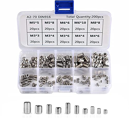POKIENE Viti Senza Testa Esagonali 200 Pz, Viti Esagonali Assortimento, Viti a Testa Cilindrica Metriche M3 M4 M5 M6 M8 Testa Piatta Esagonale, Viti a Esagono Incassato