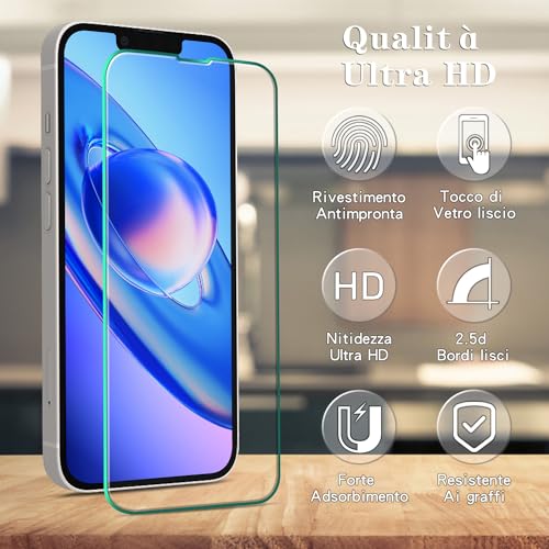 Pokolan 3 Pezzi Vetro Temperato pour iPhone 13, iPhone 13 Pro Pellicola Protettiva, Durezza 9H, HD Chiaro, Senza Bolle, Anti Graffio, Installazione Facile