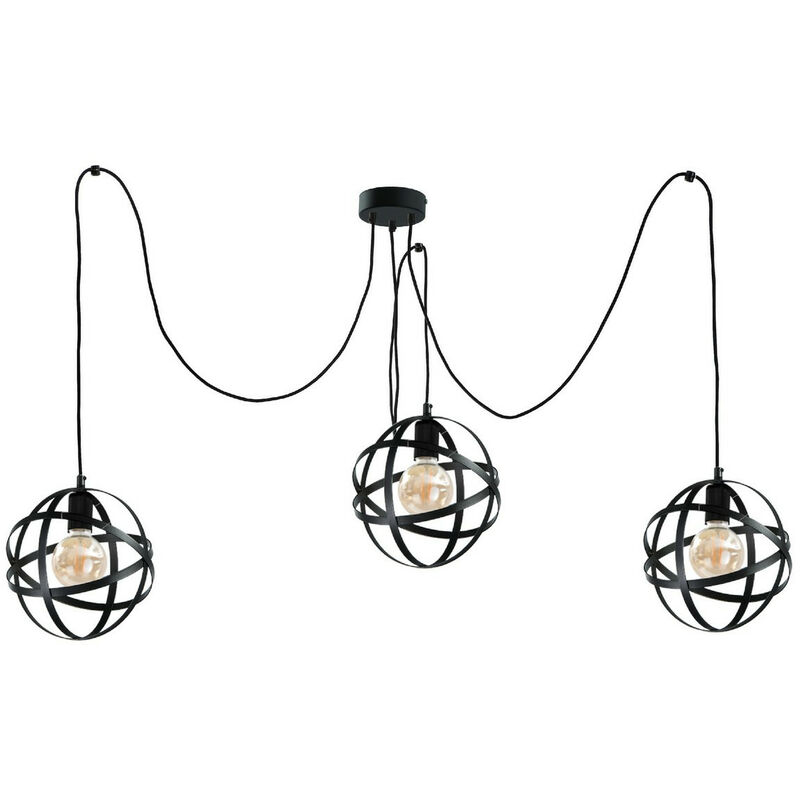 Keter Lighting - 911 Pola Cluster Sospensione Plafoniera Nera, 3x E27 | Finitura: nero | Altezza: min. 40 max. 180 cm | Lunghezza: min. 40 max. 180 cm | Larghezza: min. 40 max. 180 cm | Tipo di lampada: E27 | N. di lampade: 3 | Lampadina inclusa: no | Dimmerabile: Sì - Sono necessarie lampadine dimmerabili | Potenza (max): 60 W