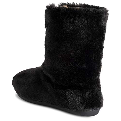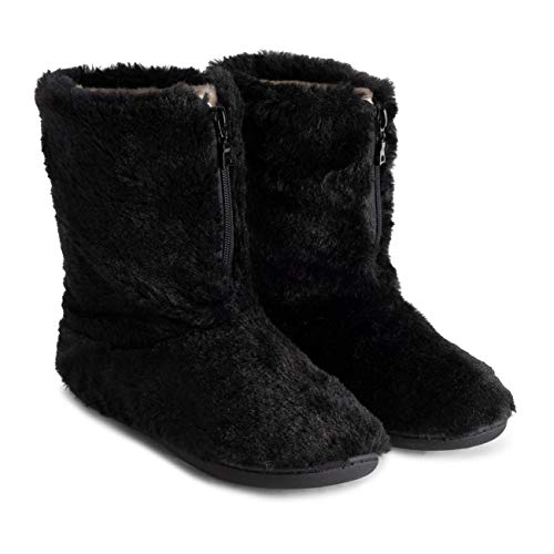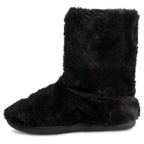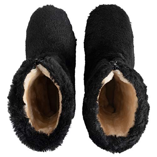 Polar Donna Memory Foam Cerniera Pelliccia Ecologica Coperta Suola di Gomma Interno All'Aperto Accogliente Lusso Stivale Pantofole - Nero - UK4/EU37 - YC0719