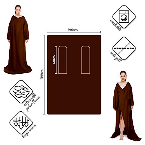 Polar Fleece Polar Sleeve Blanket Lounge Blanket Coperta con maniche in XXL - MARRONE