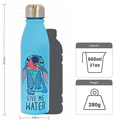 Polar Gear, Borraccia in alluminio da 600 ml, motivo Stitch, prodotto ufficiale, per bambini, riutilizzabile, ermetica, senza BPA, riciclabile, adatta per scuola, asilo, sport, picnic, multicolore