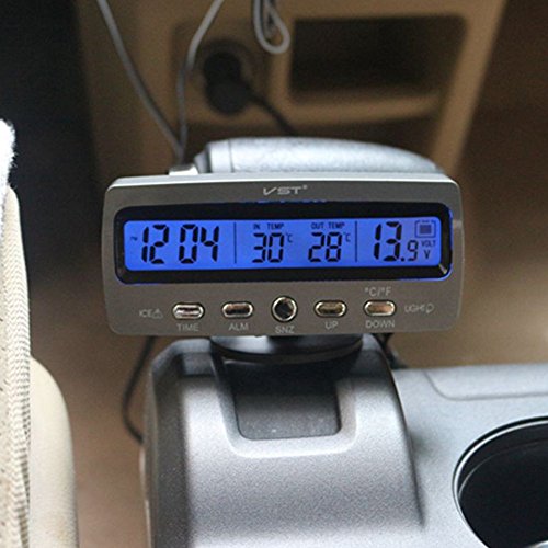 PolarLander termometro dell'automobile voltmetro Auto Interni Esterni Termometro del Tester di Temperatura di Tensione Alarm Clock