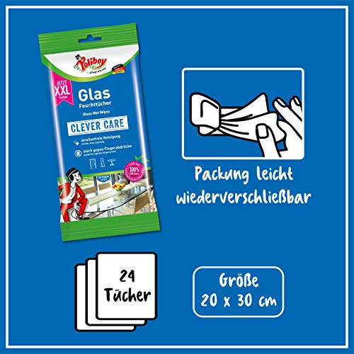 Poliboy - Salviette umidificate XXL in vetro - Pulizia rapida - per i piccoli problemi quotidiani - Singole - 2 x 24 - Made in Germany