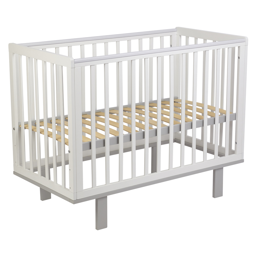 Dettagli del prodotto: Colore: bianco - grigio Regolabile in altezza in 3 posizioni 50 cm dal pavimento da 0 a 3 mesi 40 cm dal pavimento da 3 a 6 mesi 30 cm dal pavimento da 6 a 36 mesi Rete ortopedica a doghe Bordi arrotondati Sponde protettive in PVC per proteggere i delicati denti del bambino Facile da montare Materiale e cura: Materiale: legno massiccio di betulla Dimensioni e peso: Dimensioni: larghezza x profondità x altezza 127 x 96 x 64 cm Superficie di appoggio: 120 x 60 cm Peso: 18 kg Incluso nella consegna: Lettino 2 sponde protettive in PVC
