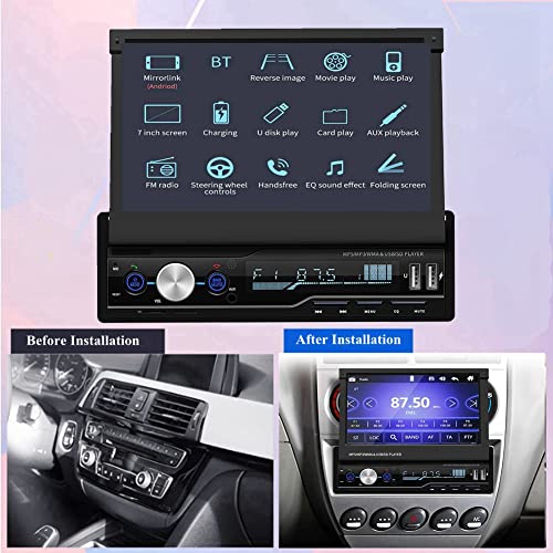 Schermo HD da 7 pollici: lettore MP5 da auto da 7 pollici Full HD da 7 pollici LCD touch screen ad alta definizione, deve essere piegato manualmente, l'angolo dello schermo può essere regolato, sensibile al tocco. Slot per schede USB/AUX/TF, la risoluzione dello schermo è 1024 x 600, ti offre un'esperienza fantastica per guardare video HD.
