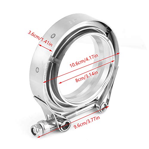2 pz x 3 Pollici V Band Morsetto, 76mm Acciaio Inox V-Band Flangia Kit Universale V-Band Turbo Downpipe Scarico Morsetto a Sgancio Rapido Maschio Femmina Flangia Kit