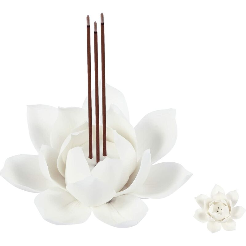 Materiale in ceramica bianca, puro artigianato, naturale e vivido, rendono la tua stanza elegante e zen. Design del loto, petali di loto in fiore multistrato, ci sono 3 fori al centro del fiore, 3 bastoncini di incenso possono essere accesi contemporaneamente, per soddisfare le esigenze di illuminazione di più radici. Il loto è più grande, misura 3,9 pollici (10 cm) di diametro e 1,97 pollici (5 cm) di altezza. Può catturare la maggior parte della cenere di incenso all'interno dei petali. Il profumo infuocato rinfresca l'aria, allevia l'ansia, rinfresca la mente, aiuta la concentrazione e mantiene la concentrazione. mente e corpo rilassati e rilassati. < p>Adatto per casa, ufficio, hotel, sala da tè, studio di yoga, meditazione, tempio buddista, soggiorno. Contenuto della confezione: 1 bruciaincenso Lotus, senza altre decorazioni.