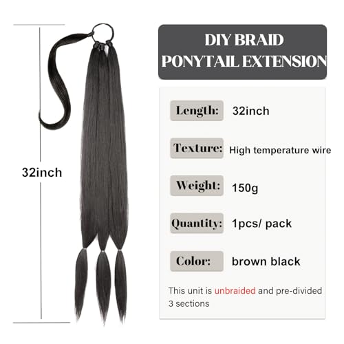 32 Pollici Lunga Coda Capelli Extension con Fascia per Capelli Coda Finta Capelli Lisci Morbidi e Naturali Code Finte per Capelli Adatta per le Donne per l'uso Quotidiano (Marrone Nero)