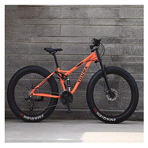 26 Pollici Mountain Bike Adulti Ragazzi Ragazze Fat Bike da Montagna, Grande Pneumatico Biammortizzata Biciclette, Telaio in Acciaio ad Alto Tenore di Carbonio,Arancia,21 Speed