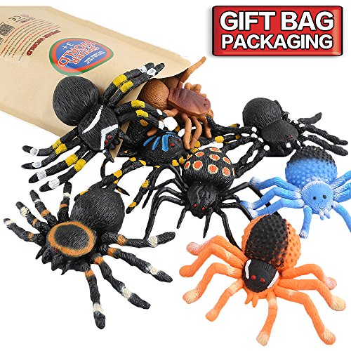 5 Pollici Realistici Neri Giocattoli Ragno Gomma Set(8 Pacchetti), Materiale TPR Super Elastico, Mondo Zoo Decorazione Halloween Raccapricciante Bomboniere Gag Novità Scherzi Vedova Nera