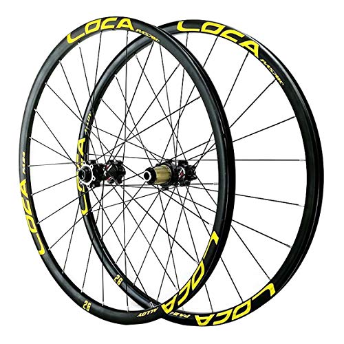 26 27,5 29 Pollici MTB Set Di Ruote Perno Passante Mountain Bike Anteriore & Posteriore Ruota Freno A Disco Bici Da Corsa 8 9 10 11 12 Velocità 24 Fori (Color: Yellow, Size: 26in)
