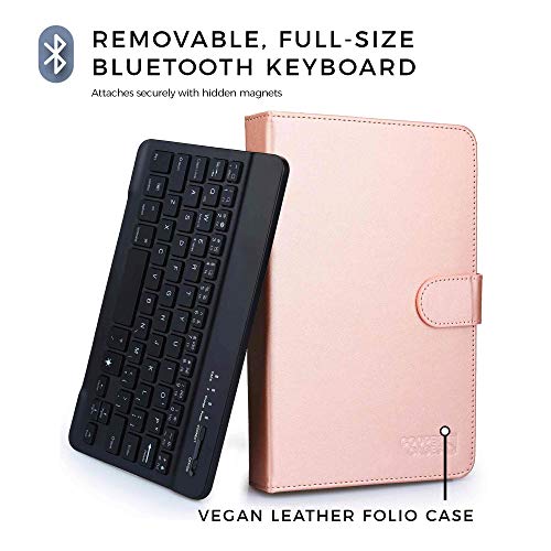 2-in-1 custodia a portafoglio in pelle con supporto e tastiera estraibile - multiuso Le funzionalità > utilizzare come compact Keyboard Folio Case o classica custodia Folio Tablet pieghevole. Materassino stand supporta Display a mani libere. Rimuovere magnetico porta tastiera per trasformare Keyboard Cover in classic custodia a portafoglio. Protettiva in pelle sintetica premium esterno fornisce durevole, robusto, cuscino antiurto in caso di caduta. In Camoscio morbido interno in microfibra protegge lo schermo da graffi e rottura.