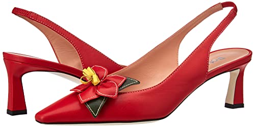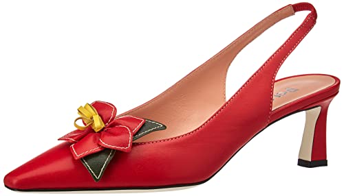 DESIGN: estremamente femminili e formali, la calzatura Ibiscus si caratterizza per il fiore in pelle con cuciture a contrasto che adorna la tomaia. Il tacco a colonna 55mm e la punta chiusa sottile a scalpello sottolineano la raffinatezza delle nuove slingback.