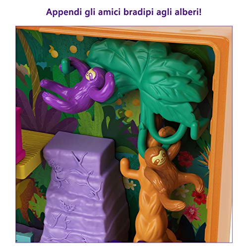 Polly Pocket- Cofanetto Merenda nella Giungla con Micro Bambole Polly e Shani, 2 Bradipi e Accessori Giocattolo per Bambini 4+Anni, GKJ53