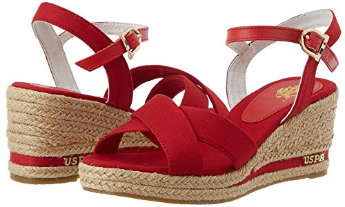 U.S. POLO ASSN. Madelyn Rope, Sandali con Cinturino alla Caviglia Donna, Rosso (Red 019), 41 EU