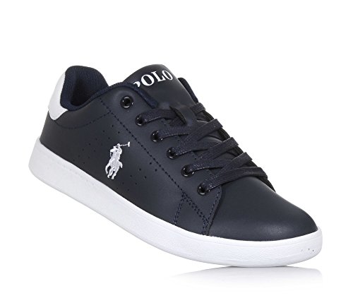 POLO RALPH LAUREN Navy Leather White Quilton Sneaker Pelle Blu