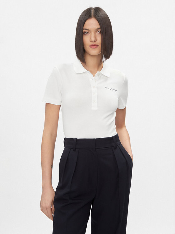 Tommy Hilfiger Polo Logo WW0WW41032 Bianco Slim Fit