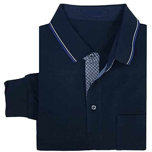 N+1 - Polo Uomo 3 Bottoni in Cotone Manica Lunga Classica Leggera con Taschino Maglia Collo Maglietta (M - Blu)