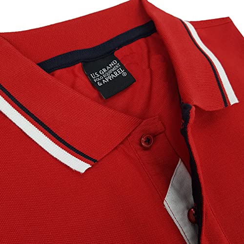 Polo da Uomo Maniche Corte Semplice Tinta Unita U.S. Grand Polo M L XL XXL XXXL (XXL - Rosso)