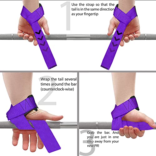 Polsiere per sollevamento pesi imbottite, in neoprene, per uomini e donne, per palestra, cross fit, allenamento, manubri, fitness, body building, power lifting, stacchi da terra (viola)