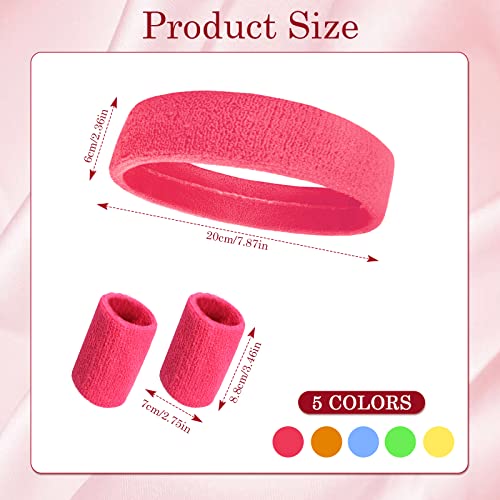 Set Polsini Fasce per il Sudore Anni '80 '90 per Donne Uomo 15Pcs Colore Fascia e Braccialetto Kit Neon Retro Party per Sport Feste Polsino Tennis per Discoteca Costumi Decorazione Palestra Yoga