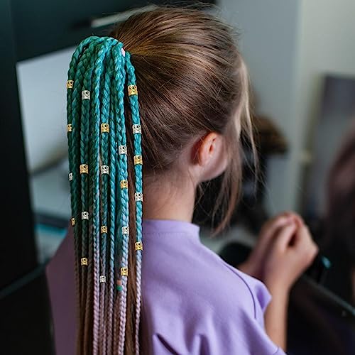 60 polsini regolabili in alluminio per confezione di trecce e perle per capelli intrecciati (oro, argento)