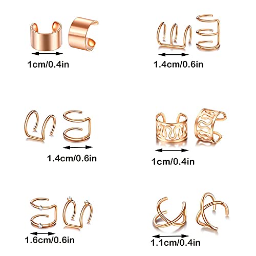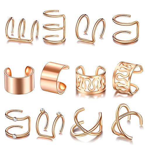 Polsino Dell'Orecchio Clip, 12 Pezzi Clip Su Orecchini In Acciaio Inossidabile, Non Penetranti Orecchio Clip Set, per Grandi Decorazioni Per Feste, Concerti, Cerimonie(Oro)