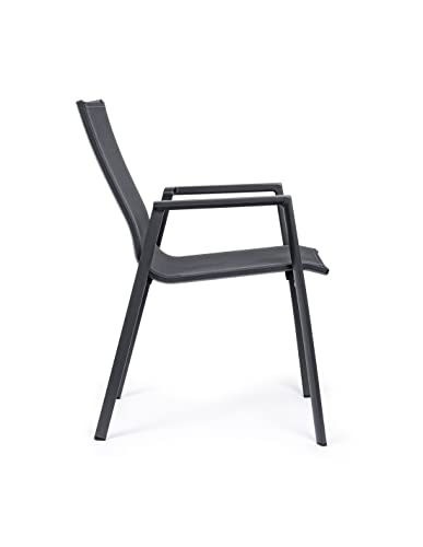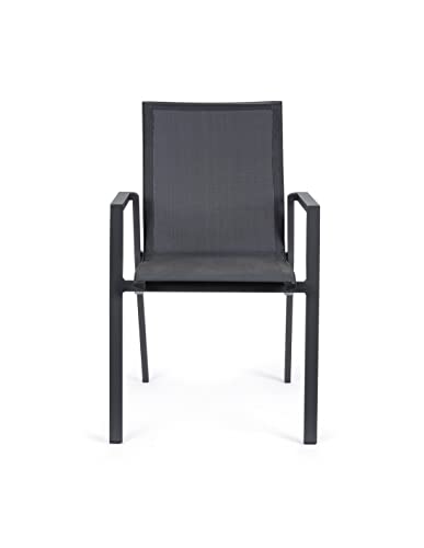 Poltrona da Giardino Esterno Moderna Nera in Metallo Tessuto Impilabile 2 Pz Krion
