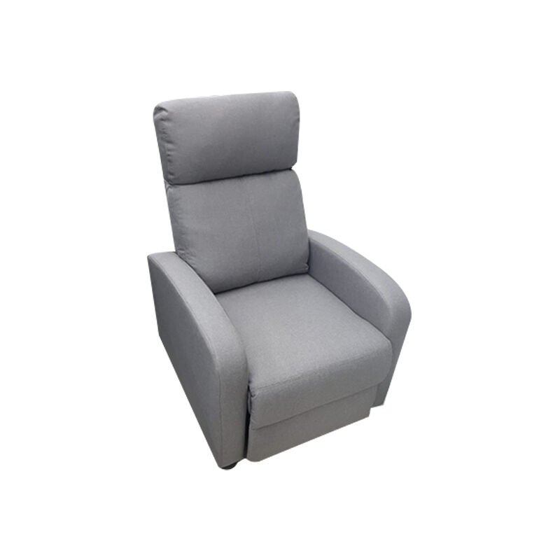 Poltrona recliner Amelia in morbido tessuto grigio e con sistema manuale a spinta sullo schienale. Lo schienale si abbassa effettuando una leggera pressione con la schiena.Le poltrone relax manuali, sono delle speciali poltrone pensate per chi vuole rilassarsi senza pensieri con un elemento di arredo di alta qualità. Vengono chiamate anche recliner, o reclinabili, perché è possibile reclinare lo schienale e modificare quindi il comfort generale della seduta. DIMENSIONI: Larghezza:69 CM, Profondita' 75cm, altezza 100cm DIMENSIONI COMPLETAMENTE DISTESA: 142 cm