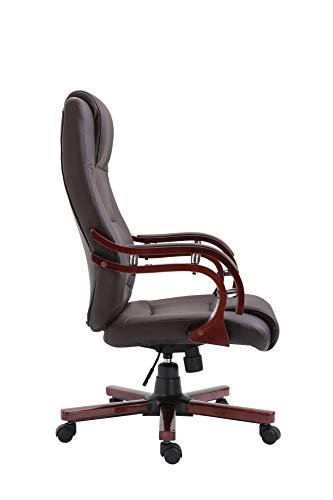 CLP Poltrona Ufficio Direzionale Charles PRO Similpelle - Sedia Ufficio Girevole con Braccioli in Legno - Poltrona Presidenziale Oscillante Imbottita Marrone