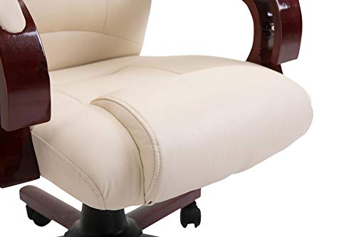 CLP Poltrona Ufficio Direzionale Charles PRO Similpelle - Sedia Ufficio Girevole con Braccioli in Legno - Poltrona Presidenziale Oscillante Imbottita Crema