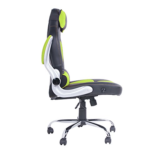 Poltrona da ufficio, da scrivania, da gaming, da computer, con schienale alto, in pelle PU, modello Executive Green