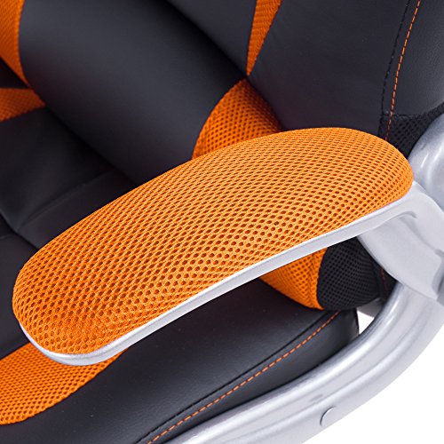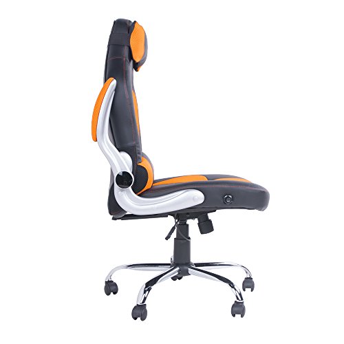 Poltrona da ufficio, da scrivania, da gaming, da computer, con schienale alto, in pelle PU, modello Executive Orange