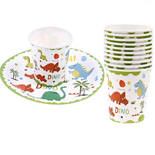Dimensioni: piatti: 18 cm, bicchieri: 5,2 cm x 7,5 cm x 8,7 cm. La confezione include 20 piatti e 20 bicchieri di carta con disegni di dinosauri, per soddisfare tutte le tue esigenze.