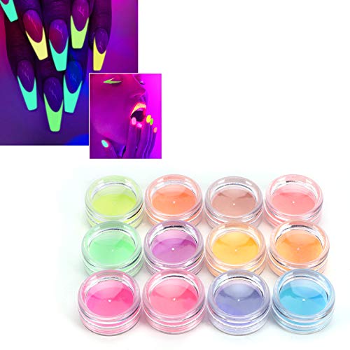 Polvere Luminosa Per Nail Art A 12 Colori, Polvere Fluorescente Luminosa In Polvere Per Pittura Del Corpo 1 G X 12 Scatole