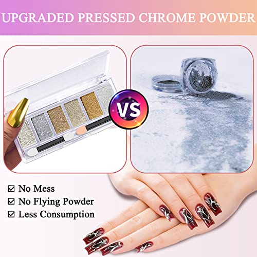 Polvere di cromo 6 in 1: riceverete 6 colori di polvere per unghie color oro, argento, cromo in una tavolozza con 6 applicatori. Poiché la nostra polvere di cromo per unghie viene pressata saldamente, la polvere di cromo è solida e fine, non fuoriesce durante il trasporto, quindi non dovrete preoccuparvi che si verifichi un disordine, la polvere per unghie non vola in giro e consuma meno durante l'uso.