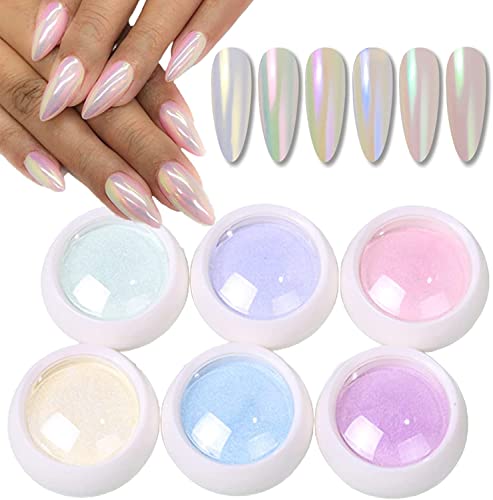 Polvere per unghie cromata, in 6 colori, aurora, effetto specchio, olografico, aurora, iridescente, glitter, cromo, per unghie in gel, decorazione manicure