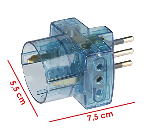 Poly Pool PP0467.9S Adattatore Triplo Spina Piccola e 2 Prese 10 A e 1 Presa Standard Tedesco, Azzurro Trasparente, 1 PEZZO